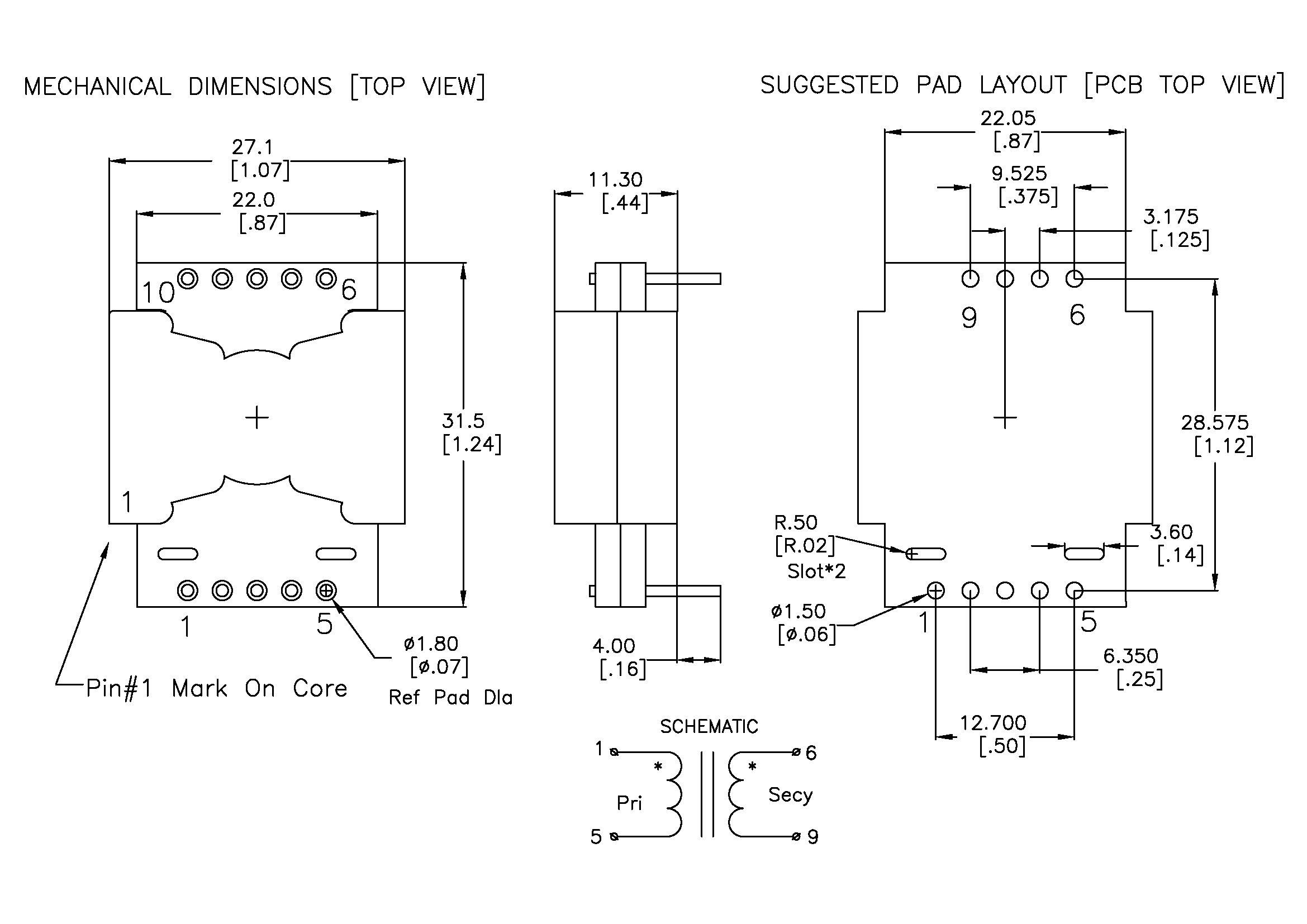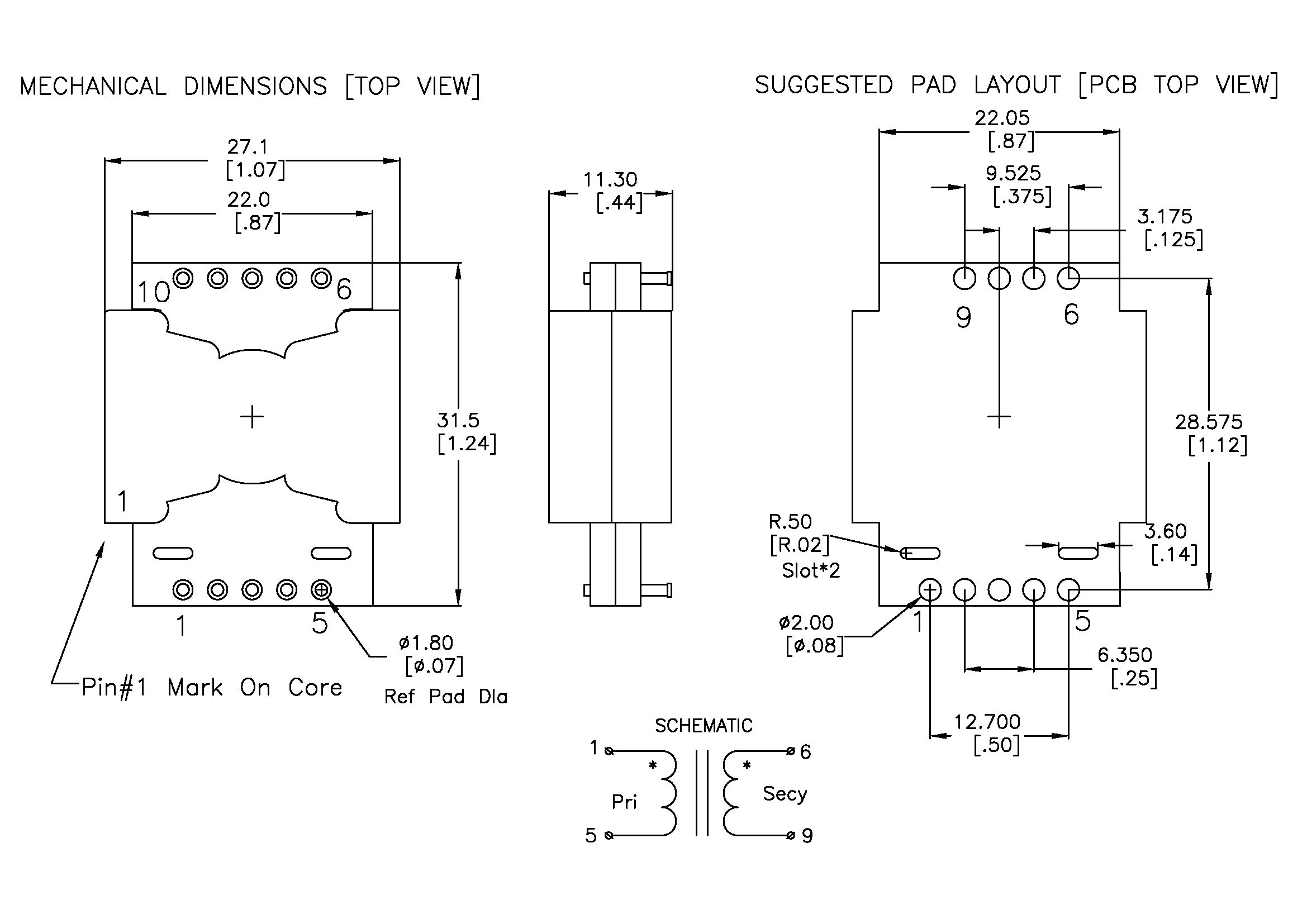 Mechanical Dimensions Drawing P26R26LF-AC Surface Mount |